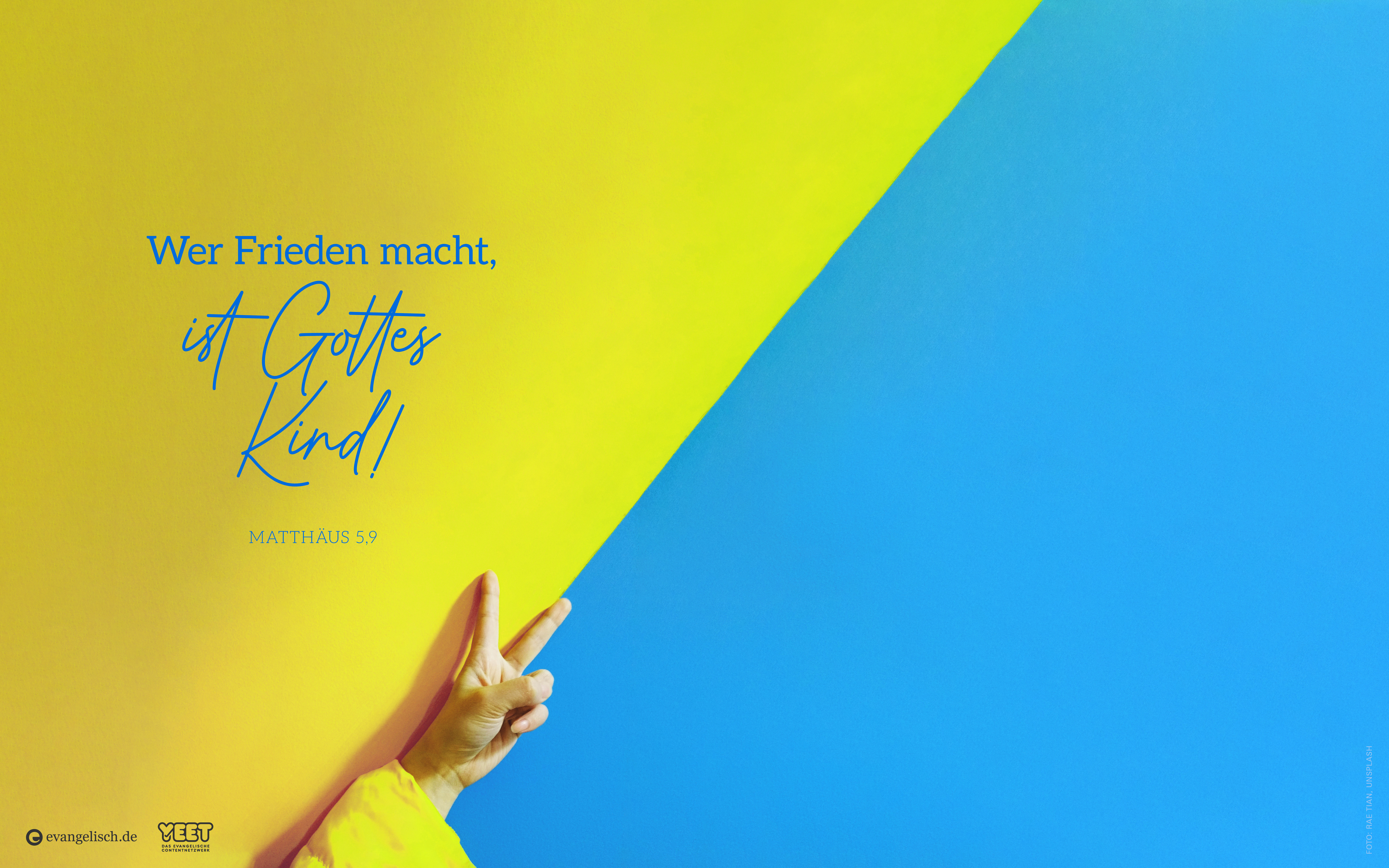 evangelisch.de und yeet bieten mutmachende Sprüche für den Frieden aus der Bibel für den Bildschirm und fürs Smartphone zum Download an.